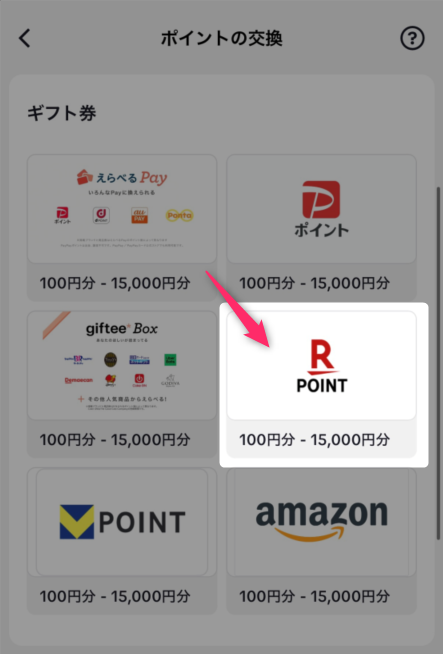 1.交換先から「楽天ポイント」を選択