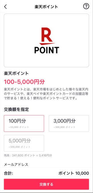 TikTokライトポイントは、楽天ポイントへ直接交換することができます。