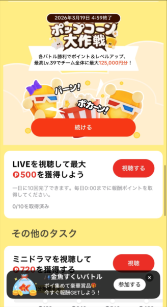 「システムメンテナンスのため、2026年3月13日以降は報酬アクティビティに参加できず、2026年3月20日以降は残高(クーポンとポイント)の引き換えができません。ただし、動画の視聴やチャット機能などは引き続き利用できます。」