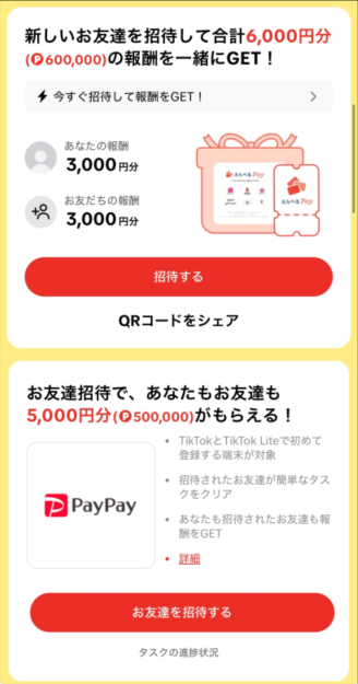TikTokライトが終了する噂が本当であれば、5分で招待キャンペーンポイントが付与される3000円招待キャンペーンを利用しましょう。